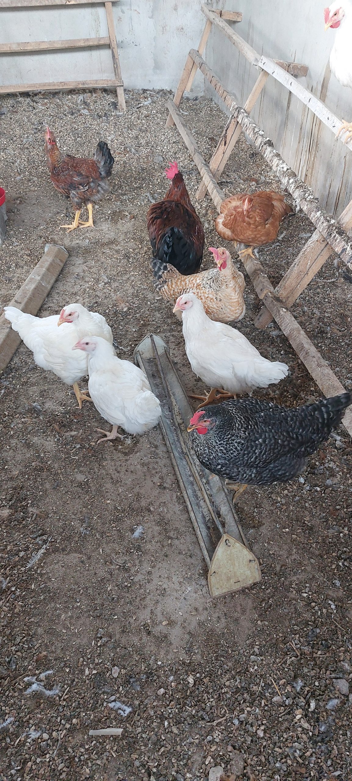 When we left in December 2024 we had 10 layers and 9 broilers left and it was disappointing to find more chickens had died before we got there in March. However 6 broilers and 3 cockerels have been sold leaving 1 broiler to fatten up a bit more, 1 cockerel and 3 hens that are now laying eggs!!