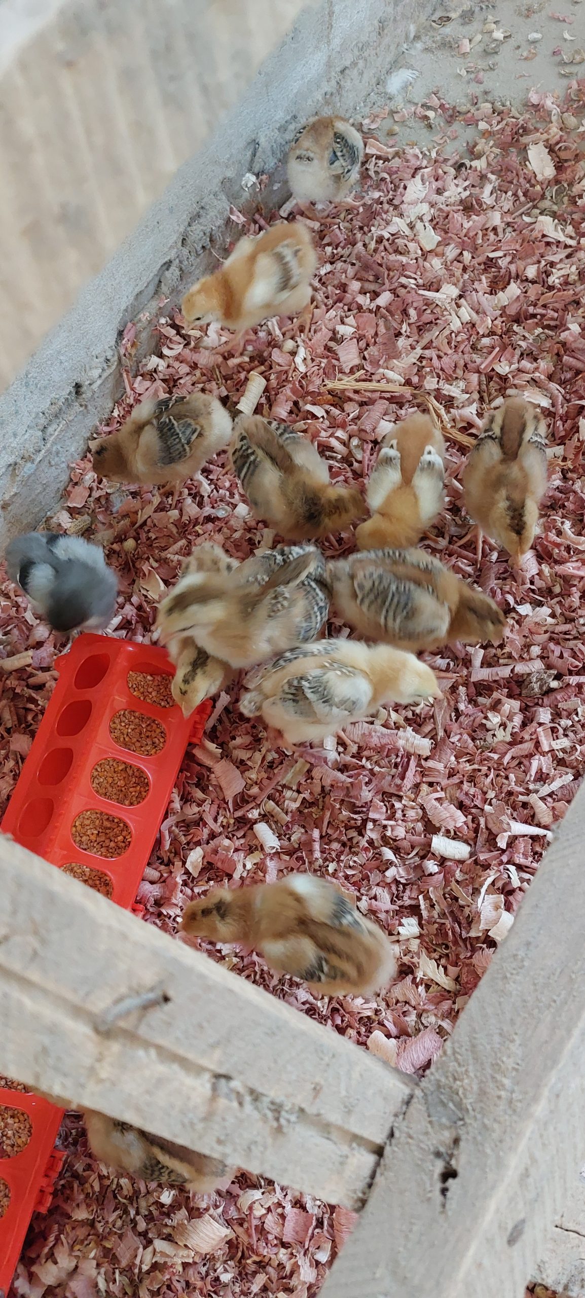 We put some sand down for the chickens which they seem to like and it was good to see they are using the perches. We made nesting areas and I was over the moon when the first egg was laid. On the other half we put down wood shavings and bought more feeders, food and 39 chicks (1 was missing). We hope that as the weather is hotter at nights now we will have a better survival rate.